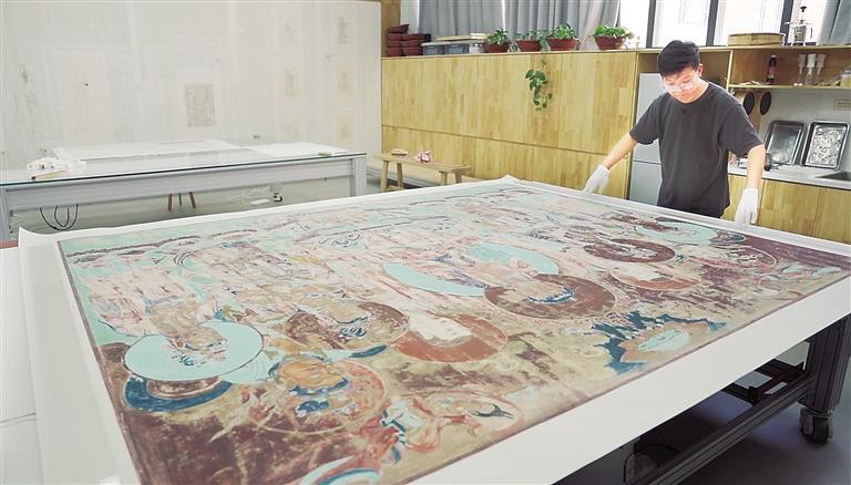“我來這里7年了,感覺也是一瞬間的事。”畢業(yè)于吉林藝術(shù)學(xué)院裝裱專業(yè)的徐喆,2017年入職敦煌研究院,“第一次來敦煌,被這里的壁畫所吸引所震撼,能夠在這里當(dāng)一名裱畫師,也是很幸運(yùn)的。”