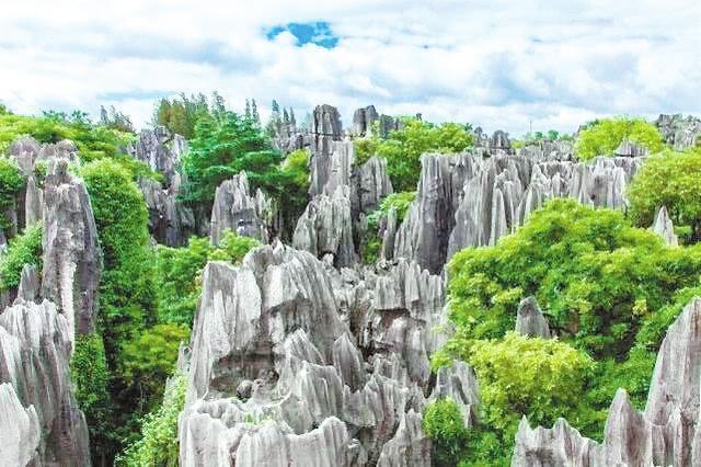 石林以高大、密集的石灰?guī)r溶柱呈森林狀分布而得名,是喀斯特術(shù)語(yǔ)“石林”的發(fā)源地。除典型的劍狀、柱狀、蘑菇狀、塔狀,還有許多不規(guī)則狀的石林,幾乎匯集了世界上所有類(lèi)似的石林地貌形態(tài),被譽(yù)為“石林喀斯特博物館”。