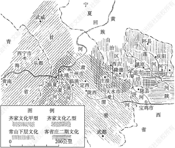 常山下層文化是黃河中上游新石器時代晚期的重要文化遺存,最早發(fā)現(xiàn)于甘肅省鎮(zhèn)原縣常山遺址而得名。胡謙盈先生認為其主要分布在西北黃土高原東部的涇、渭兩河流域上游區(qū)域,其分布范圍東至子午嶺西側(cè),西至鳥鼠山東側(cè)的渭源縣,北至寧夏回族自治區(qū)南部,南至陜西省彬縣及甘肅天水地區(qū)南部。學(xué)界普遍認為,它是由仰韶文化晚期發(fā)展而來,同時也是齊家文化的重要源頭之一。依據(jù)碳14測定,其年代約為公元前2930±180年,相對年代晚于仰韶文化,早于先周文化,是西北新石器時代晚期的文化紐帶,在研究中國史前文化演進中占據(jù)重要地位。