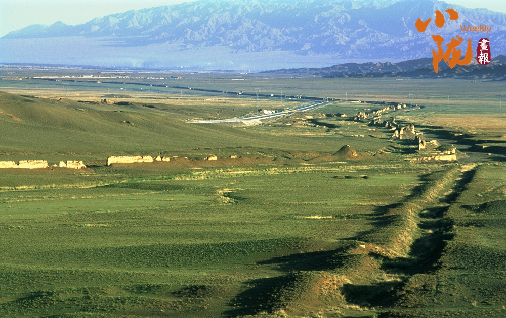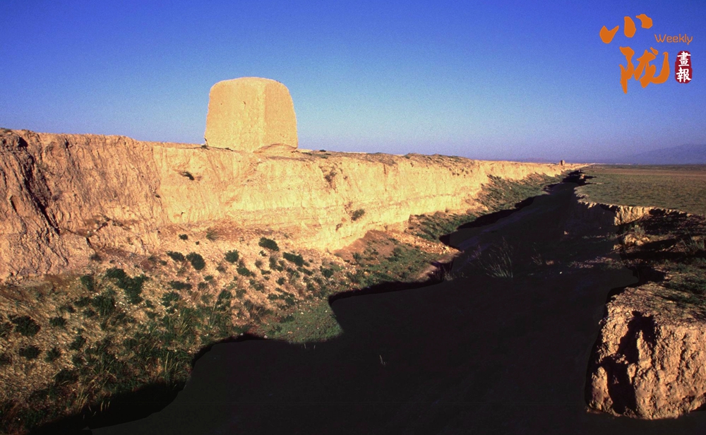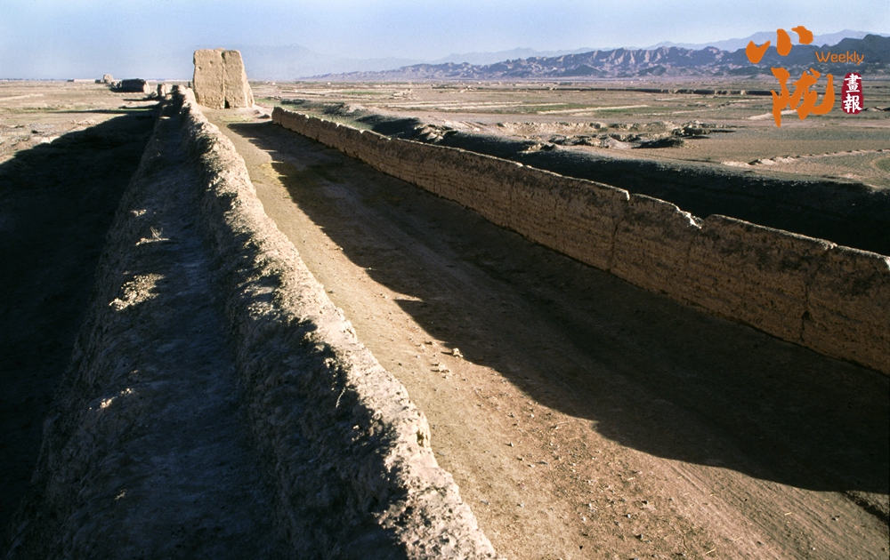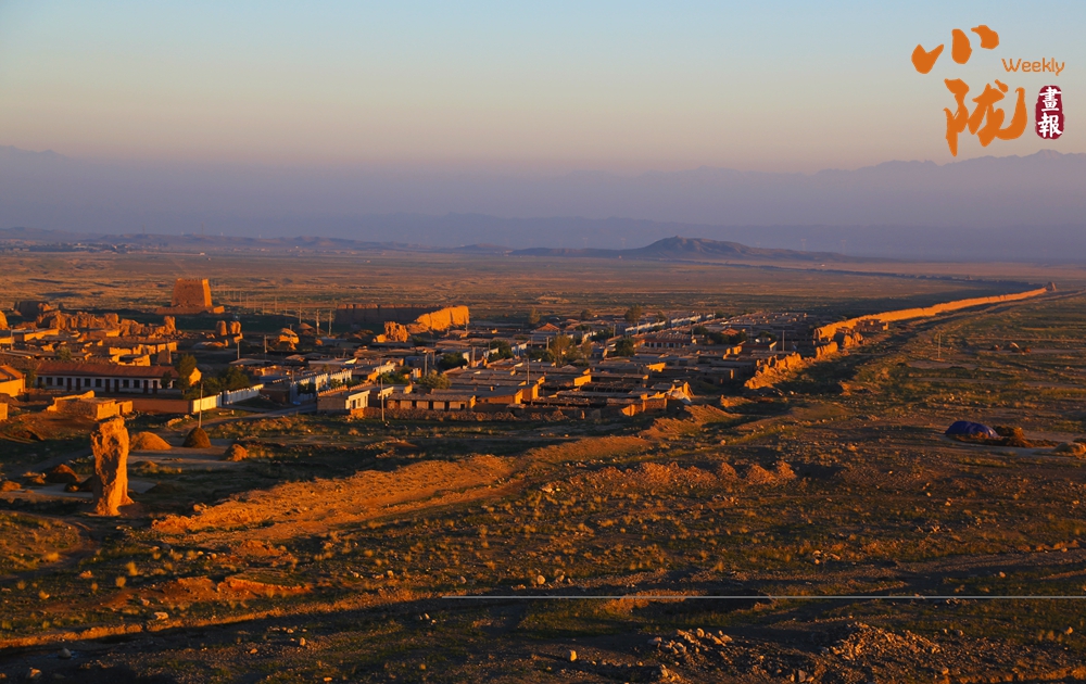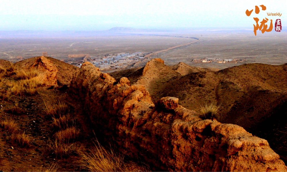 在黛藍色山脈的映襯下,漢明長城蜿蜒并行,高于地面的黃色城墻是明長城,而顏色稍深的壕溝是漢長城,兩條跨越千載的古長城最近處不過十余米,仿佛攜手講述著遠(yuǎn)古的故事……它們也猶如兩位忠誠的衛(wèi)士,守護著這片古老的土地,也見證了絲綢之路的興衰變遷。