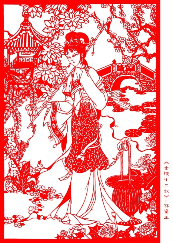 葉長友剪紙《金陵十二釵》之林黛玉、賈迎春