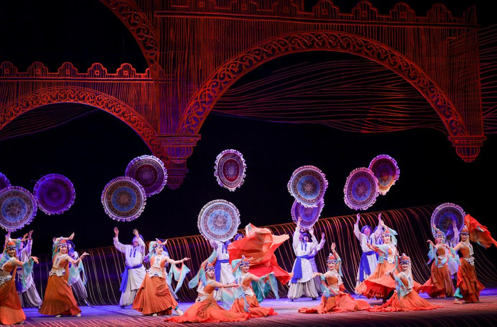 10月27日晚,在烏魯木齊文化中心大劇院,演員在舞劇《張騫》中表演。 10月27日晚,以漢代張騫出使西域為藍本創(chuàng)作的重大歷史題材舞劇《張騫》,在烏魯木齊文化中心大劇院首演。該劇由《授節(jié)》《守節(jié)》《傳節(jié)》《使節(jié)》四幕組成,演繹了張騫出使西域的“鑿空之旅”,展現(xiàn)了各民族廣泛交往、全面交流、深度交融的生動場景。 新華社記者 王菲 攝