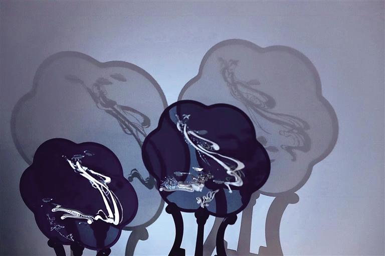 2019年劉瑤手繡的一組《敦煌手姿》扇面問(wèn)世,黑色的生絹之上,用金線刺繡出敦煌手姿的婀娜曼妙。劉瑤在創(chuàng)作中,用線條貫穿每一個(gè)細(xì)節(jié),極盡傳情達(dá)意,用針與線賦予了手姿柔美與力量。也正是憑借著這一組精美絕倫的“敦煌風(fēng)”扇面,劉瑤叩開(kāi)了這個(gè)項(xiàng)目的大門,成為了甘肅省唯一的入選者。