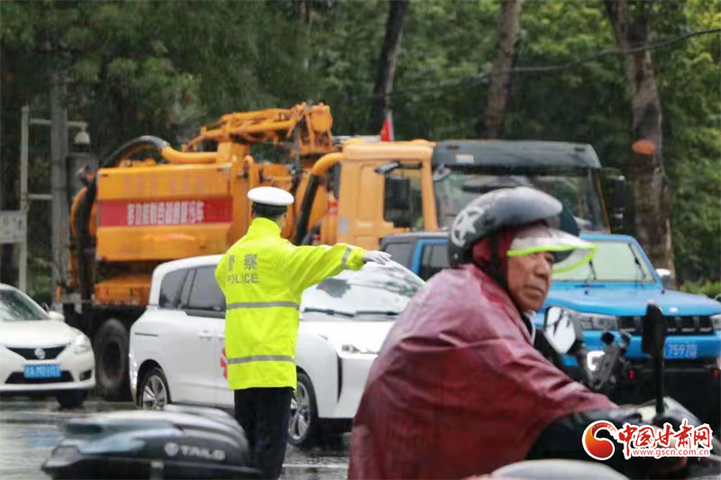 蘭州交警雨中執(zhí)勤護(hù)平安