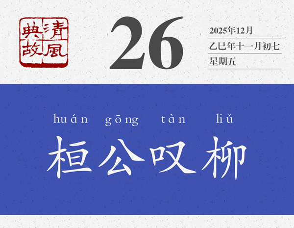 東晉咸康元年,即公元335年,桓溫出任瑯琊內(nèi)史,那個時候,他才23歲;太和四年,即公元369年,桓溫率軍伐燕,這個時候,他已經(jīng)57歲了。三十多年,他已經(jīng)從一個意氣風發(fā)的青年,變成了一個白發(fā)蒼顏的老人。時間能改變一切。樹粗了,人老了,背后都是時間在起作用。一棵小柳樹,當它長到十圍那么粗的時候,栽樹的人又會有何種感想呢?是“時間過得真快”呢,還是“我已經(jīng)很老了”呢?很可能二者都有。后遂以“桓公嘆柳”為慨嘆光陰似箭、人生易老之典。清人龔鼎孳詞《賀新郎·和曹實庵舍人贈柳叟敬亭》:“綠鬢舊顏今改盡,嘆婆娑、人似桓公柳。”