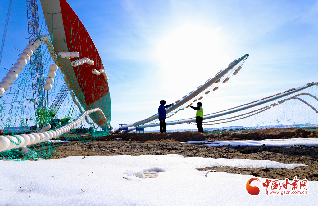 2月21日,張掖市臨澤縣板橋北灘20萬(wàn)千瓦光伏發(fā)電項(xiàng)目建設(shè)現(xiàn)場(chǎng),工作人員正在進(jìn)行發(fā)電前的設(shè)備調(diào)試。