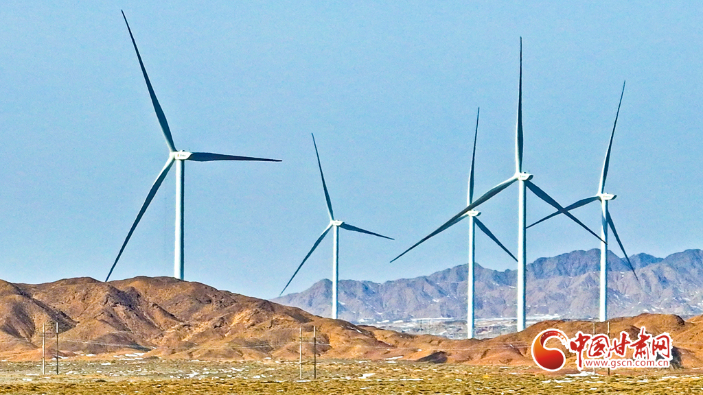 2月21日,張掖市臨澤縣平川北灘30萬(wàn)千瓦風(fēng)電項(xiàng)目建設(shè)現(xiàn)場(chǎng),已建成的風(fēng)電機(jī)組。