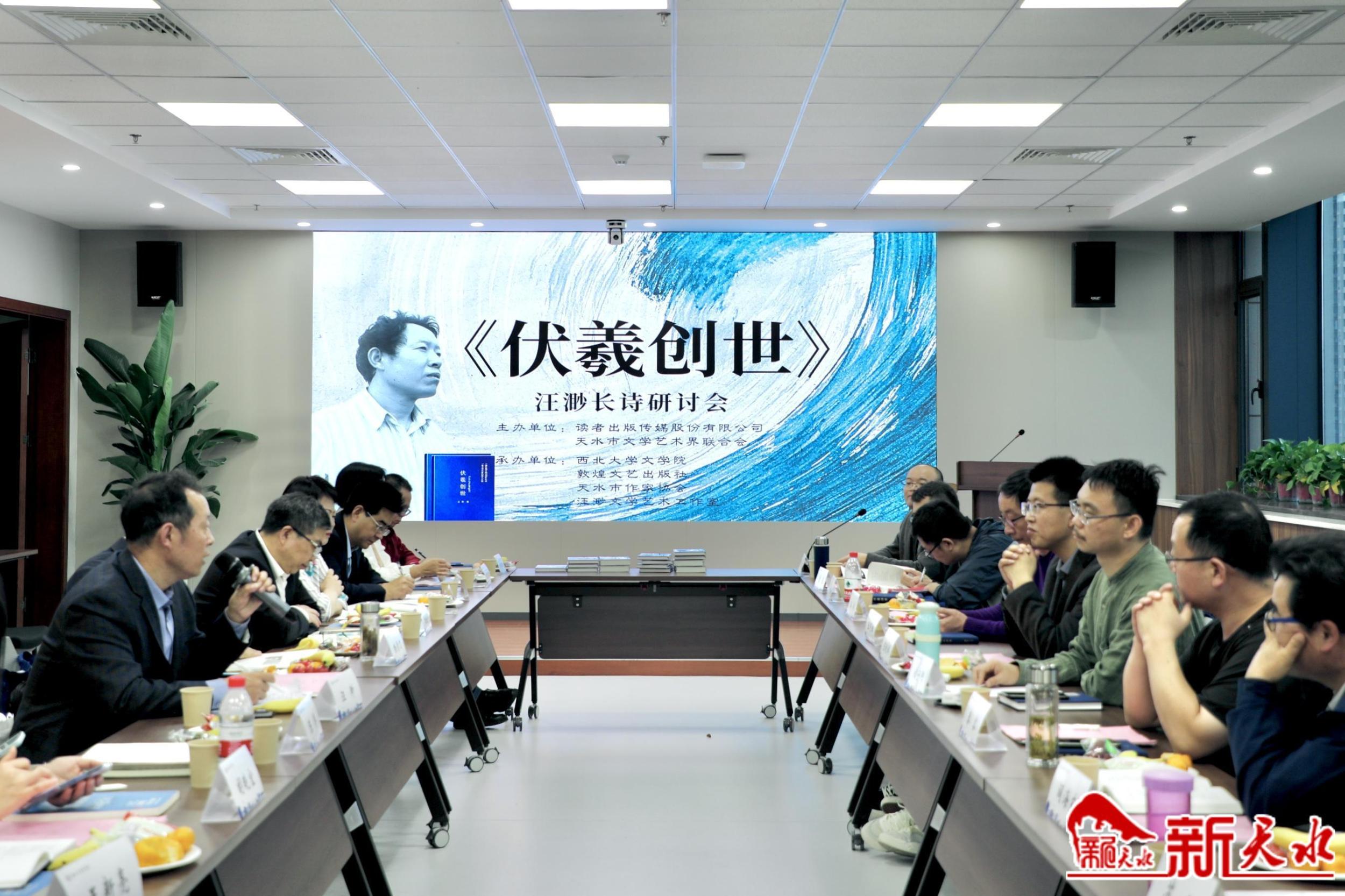 新天水訊【記者楊華 陳光毅】10月14日,天水詩人汪渺長(zhǎng)詩《伏羲創(chuàng)世》研討會(huì)在西北大學(xué)文學(xué)院舉辦。本次研討會(huì)由讀者出版?zhèn)髅焦煞萦邢薰尽⑻焖形穆?lián)主辦,西北大學(xué)文學(xué)院、敦煌文藝出版社、天水市作協(xié)、汪渺文學(xué)藝術(shù)工作室承辦。