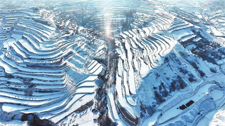 雪后的梯田披上了一層厚厚的冬衣。渭源縣融媒體中心供圖