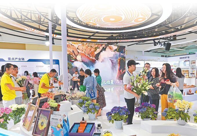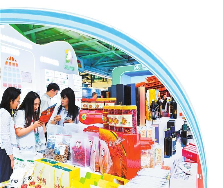 張掖館內,各類特色農產品受到人們的青睞。 新甘肅·甘肅日報記者 馬伊星