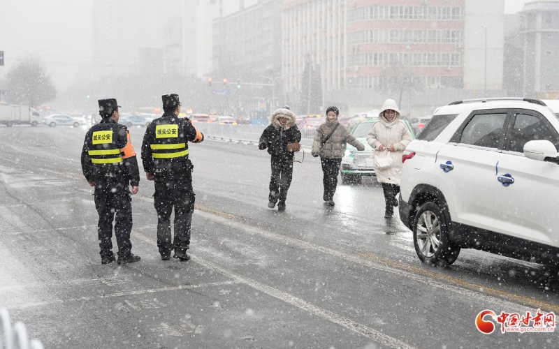 1月29日,金城蘭州迎來降雪天氣。漫天大雪中,蘭州公安民輔警們把賞雪模式切換成戰(zhàn)斗模式,迎著風(fēng)雪出發(fā)在崗位上“浴雪奮戰(zhàn)”。民輔警們清理積雪、疏導(dǎo)交通、幫助群眾,讓大家少一點阻礙、多一份安全。
