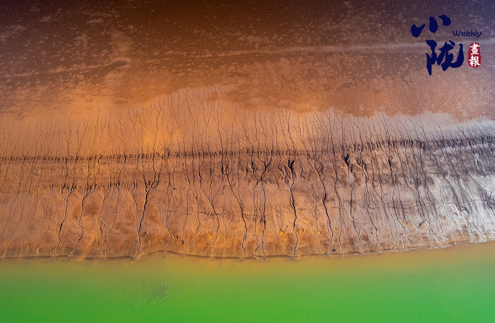干燥的泥表交錯分布、由主到次不斷分岔,形成如老樹虬根般蜿蜒伸展的圖案。那細(xì)膩而連貫的線條,猶如大自然親手繪制的一幅“根系地圖”,記錄著水分消退的足跡。