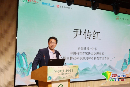 科普時報社社長、中國科普作家協(xié)會副理事長、國家林業(yè)和草原局林草科普首席專家尹傳紅發(fā)表題為“激發(fā)想象力和探求欲的科普閱讀”的主題演講。尹傳紅認為科普閱讀可以與孩子的智力發(fā)育同步進行,科學可能是最能彰顯問題、發(fā)現問題、解決問題的重要領域,科普閱讀能幫助孩子增長知識、增加智慧、增進思想。