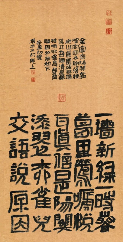 張平生是“詩人中的書法家,是書法家中的詩人”,是真正實現(xiàn)“我筆寫我文”的為數(shù)不多的“藝文兼?zhèn)?rdquo;型書法家。他的的書法,充分發(fā)揮“二爨”優(yōu)勢,上溯漢碑簡牘,把三者的風(fēng)格重新優(yōu)化組合,生發(fā)出新的系列,活化了“二爨”在當(dāng)代的創(chuàng)作形態(tài),獲得廣泛贊譽(yù)。