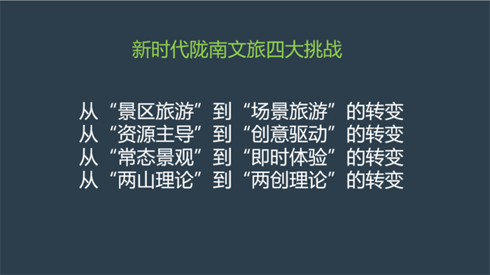 作為具備后發(fā)優(yōu)勢的隴南,在推進(jìn)文旅康養(yǎng)產(chǎn)業(yè)發(fā)展的過程中,我們必須認(rèn)識(shí)和應(yīng)對(duì)這四大轉(zhuǎn)變或調(diào)整,“謀定而動(dòng)”,否則,如果我們還以傳統(tǒng)的方式追求建設(shè)景區(qū),有可能做出來的大項(xiàng)目,是過時(shí)的,過期的,是被當(dāng)下的旅游消費(fèi)者所遺棄的。