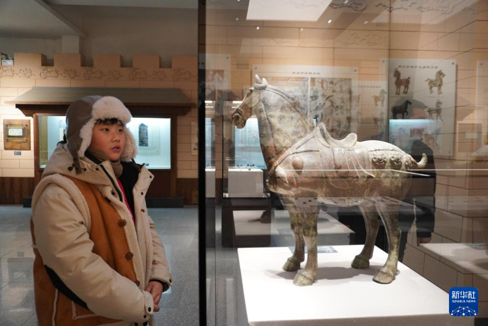 1月21日,在甘肅省敦煌市,參加研學活動的學生參觀陽關博物館。新華社記者 馬希平 攝