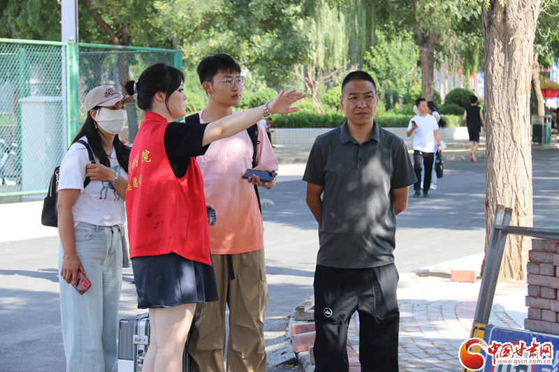 志愿者正在引導(dǎo)學(xué)生和家長