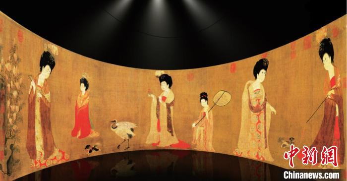 近日,遼寧省博物館推出“唐宋風(fēng)華——數(shù)字畫(huà)境中的藝術(shù)世界”展覽,圖為云裳花容區(qū)。(遼寧省博物館供圖)
