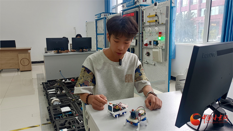 培黎職業(yè)學(xué)院信息技術(shù)學(xué)院學(xué)生唐俊杰和他的創(chuàng)新團(tuán)隊(duì)最近組裝了兩只機(jī)器狗,通過(guò)語(yǔ)音遙控可以實(shí)現(xiàn)指令輸出,達(dá)到陪伴、互動(dòng)的目的。唐俊杰說(shuō),“手腦并用、創(chuàng)造分析”鼓勵(lì)他們要理論聯(lián)系實(shí)際,以動(dòng)手能力讓圖紙變成現(xiàn)實(shí),機(jī)器狗是他們的在實(shí)踐課程中不斷創(chuàng)新探索而來(lái)。