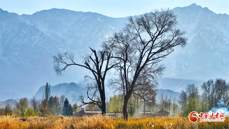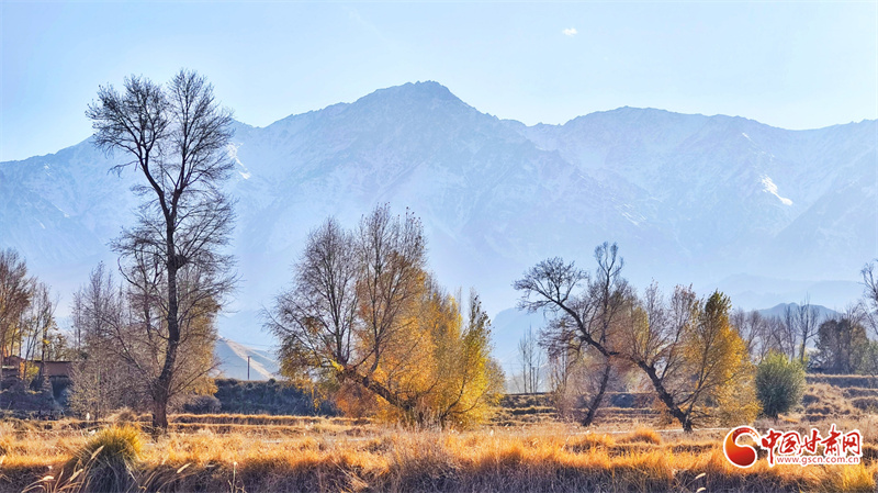 初冬時節(jié),張掖市民樂縣南古鎮(zhèn)柳谷村景色宜人。巍峨的祁連山脈連綿起伏,山腳下,萬畝良田阡陌縱橫,黃綠相間的樹木點(diǎn)綴其間,為大地暈染出豐富的色彩層次,盡顯祁連山下冬日的獨(dú)特韻味。