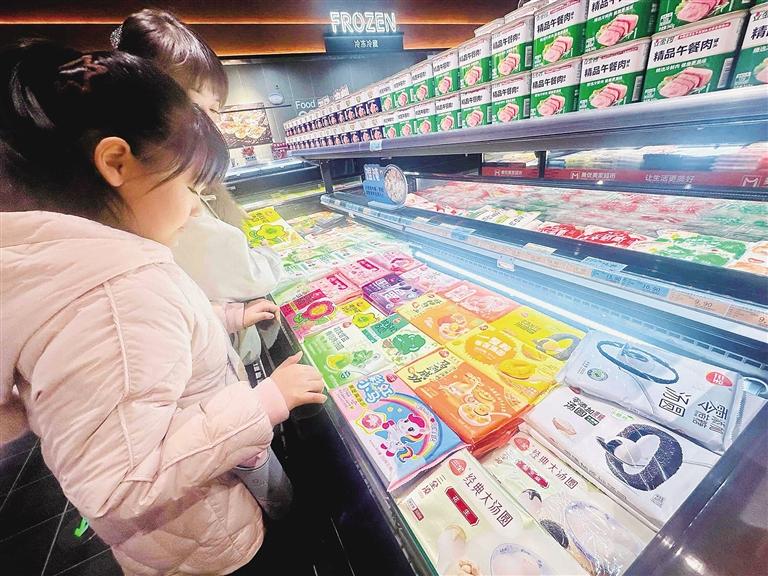 市民趙女士精心挑選果味元宵:“上次購買的這款爆心啵啵元宵口感清爽細膩,老人孩子都愛吃,我們還跟著教程做了不同吃法,這不馬上快元宵節(jié)又逢開學(xué),特意多囤一些。”市民李女士帶著孩子選購了一款“馬到成功”奧巧味元宵。“往年多吃黑芝麻、水果味的元宵,今年想嘗點新意,這款價格實惠,孩子也喜歡。”李女士說。