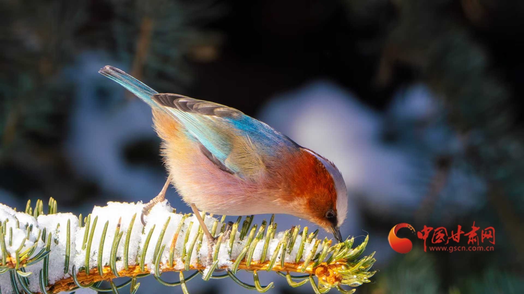 中國(guó)甘肅網(wǎng)2月26日訊(西北角·中國(guó)甘肅網(wǎng)記者 張慧雅 通訊員 焦方寧 王東琳 張宏)春日里,朔風(fēng)卷寒,瓊英漫舞。冷空氣過境后,祁連山區(qū)被厚厚的白雪層層疊疊地包裹,千峰萬壑在陽光下閃耀著清冷的銀輝,仿佛天地間所有的色彩都被收斂,只留下一片浩渺蒼茫的純白世界。暖陽下的祁連山林靜極了,靜得能聽見雪粒從松針上輕輕滑落的細(xì)碎聲響。在清寂蒼莽的林海間,總有一抹靈動(dòng)色彩暈染在蒼山翠柏之間,為寒冷的山野添得幾分鮮活生氣。這抹亮色,定格了鳳頭雀鶯雪中覓食的珍貴瞬間。這些幀幀如畫的影像,既鐫刻下高山珍禽于自然環(huán)境中求生的智慧,也繪就出祁連山生態(tài)系統(tǒng)獨(dú)有的生命力與堅(jiān)韌底色。